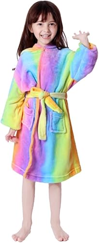 Rainbow Unicorn Flannel Robe for Soft Hooded Bathrobe with Cartoon Design Warm Coral Fleece Nightgown for Fits Height Cozy Sleepwear for Home and Pool