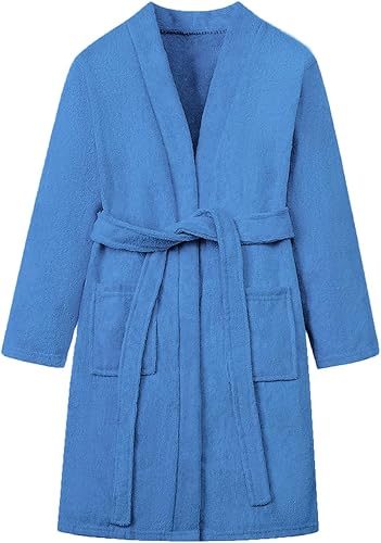 Umeyda Boys Girls Towel Robe Soft Terry Cloth Cotton Kimono Bathrobes for Kids, Dark Blue, 11-12 Years