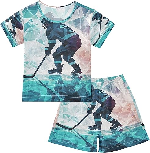 ALAZA Color Ice Hockey Player Pajamas Set Short Sleeve Cotton Sleepwear Summer Pjs 2 Piece 5-14Y