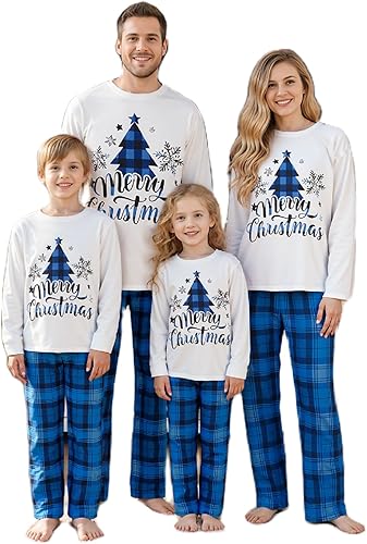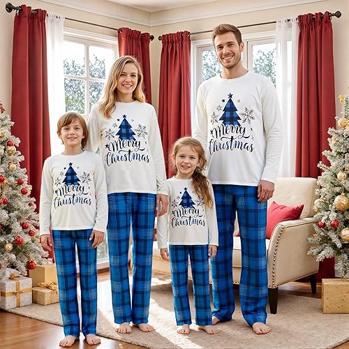 Christmas Family Pajamas Matching Sets Cute Pattern Top Plaid Pant Matching Pjs Outfit for Christmas Holiday Xmas Party (Kid, 6 Years,#019)