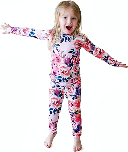 Posh Peanut Girls Pajamas - Soft, Viscose from Bamboo PJs for Kids - Matching, Long Sleeve Toddler Pajamas for Girls