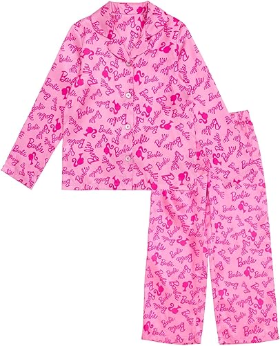 Barbie Girls Satin Lounge Sleep Pajama Shirt and Pants Set Little Kid to Big Kid Sizes (4-14-16)