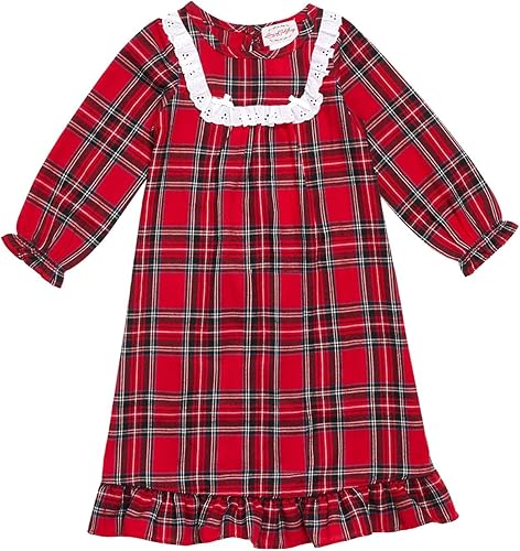 Lanz of Salzburg Sleepwear for Girls Pajamas Classic Long Sleeve Soft Flannel Holiday Plaid Nightgown (Toddler and Kids)
