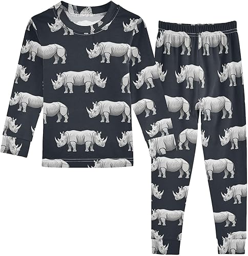 Pajama Sets Long Sleeve Rhino Pattern Print Design Soft Comfy Sleepwear 2 Piece PJS 3-8T