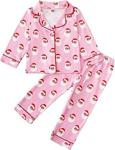 Toddler Girl Boy Christmas Pajamas Santa Claus Button Down 2 Piece Pajama Set Little Kids Christmas Pjs Nightgown