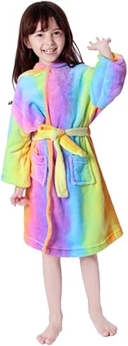 Rainbow Unicorn Flannel Bathrobe for Hooded Cartoon Animal Nightgown Soft Coral Fleece Pajamas Suitable for Height Home Sleepwear