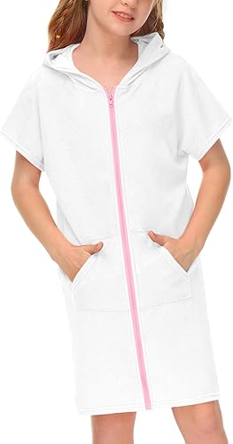 BesserBay Unisex Kids Zip Up Terry Swim Cover Up Cozy Hooded Bathrobe with Pockets 3-14 Years