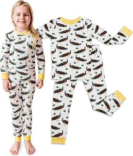 Zip N' Bear Buttery Soft Girls Pajamas - Styled By Kardashians - Pretty Peacock Pjs for Girls - Hypoallergenic & Ultra-Breathable Pajama Set for Kids - Multicolor, 7/8 Years