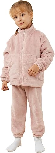 Boys' Girls' Flannel Clothes Set, Zipper Top and Pants Winter Warm Soft Fuzzy Homewear