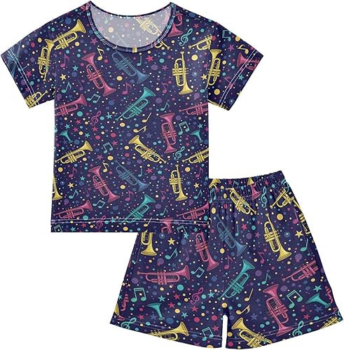 Pajama Short Sets Musical Instruments Background Soft Cotton Summer Sleepwear 2 Piece PJS Size 5-14T