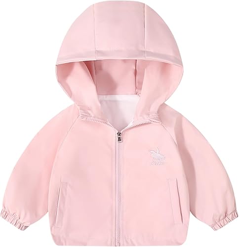 Toddler Boys Girls Rain Jacket Cute Bunny Embroidery Waterproof Windbreaker Solid Lightweight Full Zip Up Raincoat
