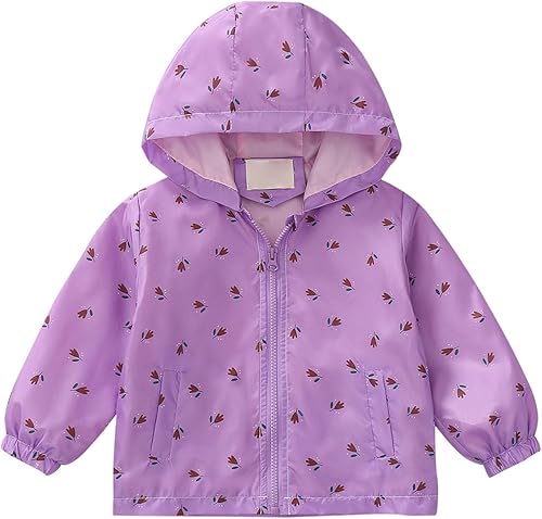 Moonker Girls Zip Up Rain Jacket Toddler Waterproof Printed Hoodies 1loral Windproo1 Raincoat Long Sleeve Cute