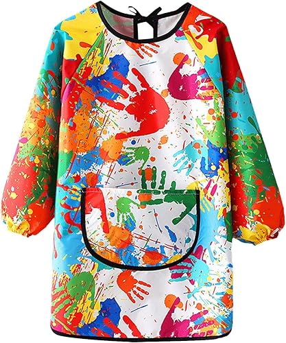 Kids Raincoats Children's Art Overalls Children's Apron Painting Supplies Long Sleeves Kids Lined Raincoat (Red, 9-13 Years)