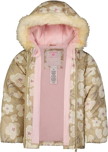 Carter's Little Girls Snowsuit Heavy Winter Jacket and Snow Bib Pants and Gloves Khaki 4