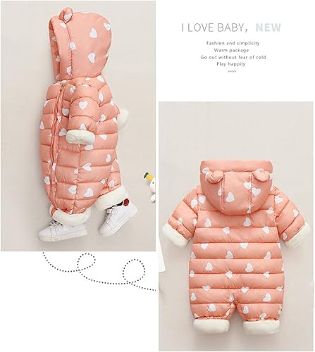 Baby Girl Winter Snowsuit Boys Girls Jumpsuit Outwear Snowsuit Padded Jacket Warm Romper Coat 0-18 (Pink, 3-6 Months)