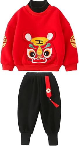 Little Girls Boys Kids Two Piece Winter Warm Spring Festival Tiger Lunar Asian Year Tang Suit Outfits Set Clothes