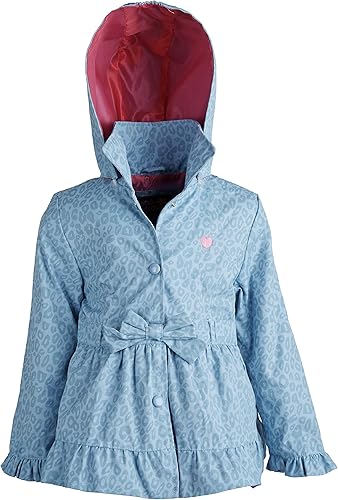 Pink Platinum Little Girls Waisted Leopard Spring Trenchcoat with Removable Hood - Blue (Size 4T)