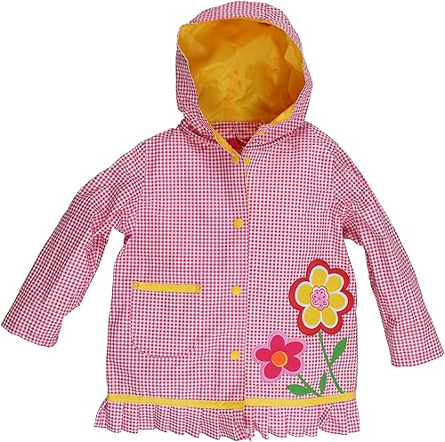 Little Girls Hooded Gingham Trench Raincoat - Fuchsia (Size 4)