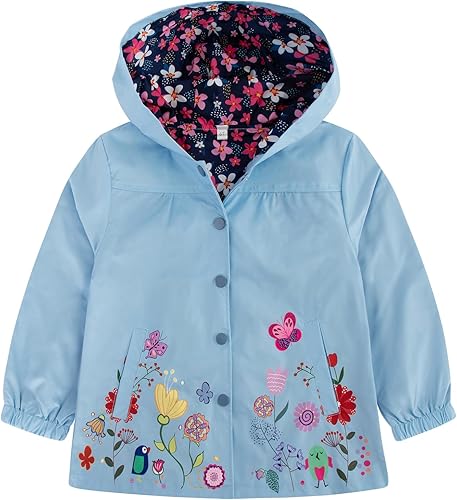 Toddler Girls Jacket Lightweight Hooded Windbreaker Kids Water-Resistant Light Rain Jacket Print Outwear 4-10Y