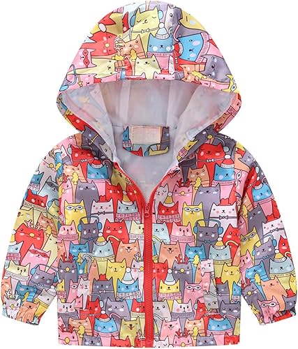 Kids Windbreaker Hooded Jacket Teen Girls Waterproof Rain Jacket Toddler Long Sleeve Raincoats Casual Zip up Outerwear