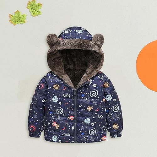 Toddler Boys Girls Dinosaur Winter Coat Puffer Jacket Quilted Lined Hooded Outerwear Windproof (Navy, 4-5 Years)