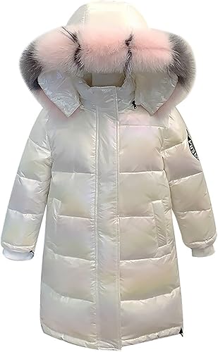 Girls Long Winter Parka Coats Cute Gradient Color Quilted Puffer Jackets Faux-Fur Insulated Snow Ski Down Outwear