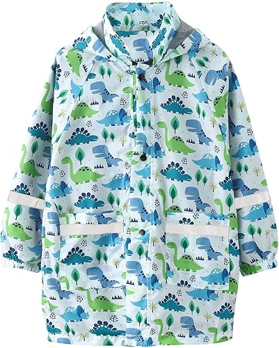 Kids Toddler Raincoat Boy Girl Rain Poncho with Hood Water-Proof Rain Coat Children Cartoon Schoolbag Rainwear Outfit Blue