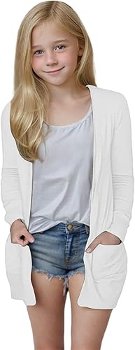 Children Kids Girls Autumn Spring Summer Casual Solid V Neck Elegant Cardigan Pockets Tops Little Girl Jacket Size 5