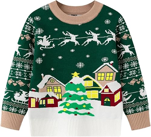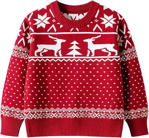 Ugly Christmas Sweater Kids Fall Cute Elk Snowflake Graphic Sweaters Girls Holiday Oversized Crewneck Knit Sweatshirt