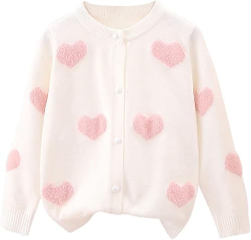 Girls Knit Cardigan Cute Heart Graphic Soft Thick Sweater Kids Long Sleeve Fall Cropped Button Cardigan Coats Clothes
