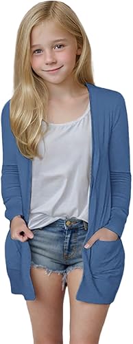 Girls Cardigan Open Front Casual Long Sleeve Fall Winter Loose Outerwear Tops with Pockets for 5-14 Years