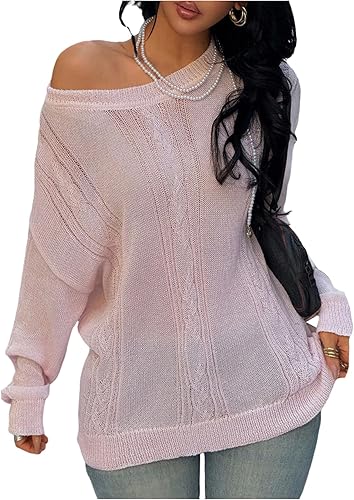 SweatyRocks Girl's Drop Shoulder Crew Neck Sweater Tops Long Sleeve Loose Cable Knit Pullovers