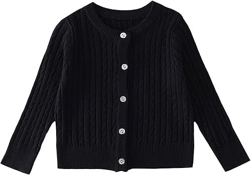 Cable Knitted Sweater Cardigan for Girls Long Sleeve Button Up Cozy Tops Kids Winter Warm Casual Daily Basic Outerwear