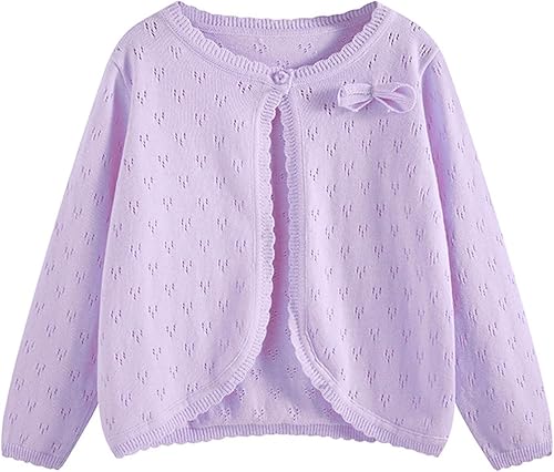 Lightweight Knit Cardigan Sweater for Girls Shrug Long Sleeve Openwork Lace Button Dress Cover Up Toddller Casual Tops