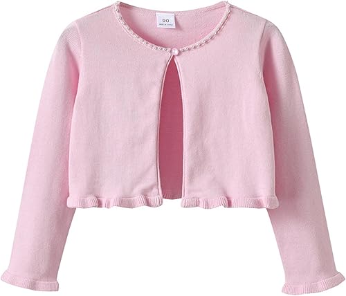 Girls Open Front Bolero Shrug Kids Long Sleeve Cropped Elegant Cardigan Knit Sweater Cotton Jacket