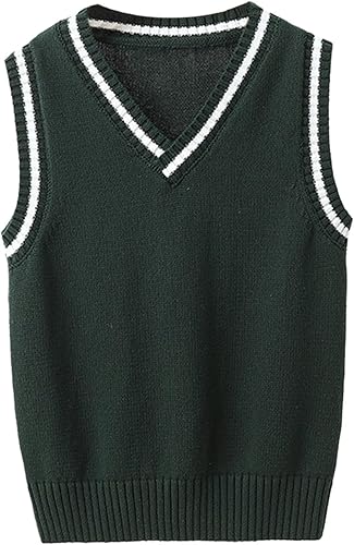 Kids Boys Girls V Neck Knit Vest Sleeveless Pullover Vintage Knit Sweater Vest Teen Preppy Pullover Top Loose Sweater