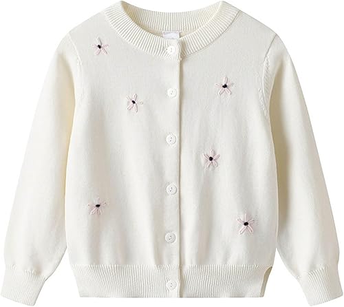 Toddler Girls Preppy Style Cute Flower Cardigan Sweaters Knitted Button Down Winter Warm Long Sleeve Outerwear for 2-13 Years