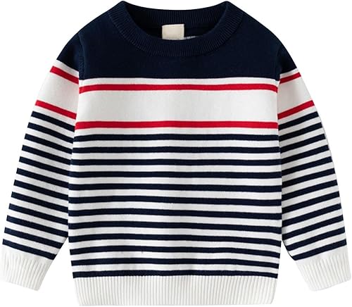 Baby Toddler Striped Crewneck Sweaters Girls Boys Long Sleeve Cozy Pullover Kids Knitted Tops for 2-10 Years