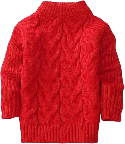 Kids Long Sweaters Fall Cable Knit Mock Neck Warm Chunky Winter Pullover Sweater for Girls Boys Thick Turtleneck Tops