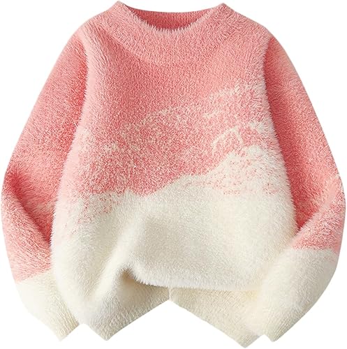 Girls Gradient Sweaters Toddler Kids Long Sleeve Cozy Knitted Winter Warm Pullover Crewneck Jumper Tops for 3-13 Years