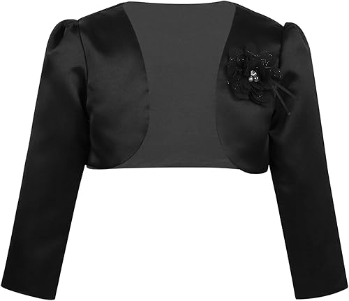 Hularka Baby Girls Long Sleeves Bolero Shrugs 3D Applique Cropped Cardigan Tops Wedding Bridesmaid Dress Cover Up