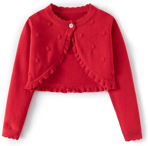 Little Girls' Knit Long Closure Bolero Shrug with Ruffle Trim, Toddler Girls Long Sleeve Cropped Bolero Sweater