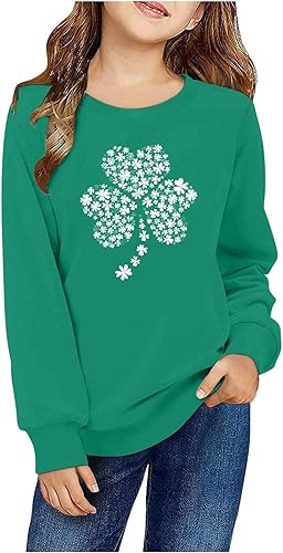 Girls St Patricks Day Shirt Cute Graphic Long Sleeve Saint Patty Outfits Teens Kids Preppy Clothes 2-10 Years