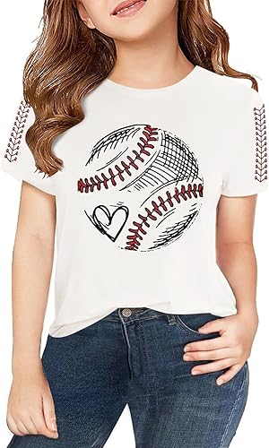 Cute Baseball T Shirt for Girls Short Sleeve Crewneck Cotton Tee Shirts Cute Tops for Kids Graphic Tees Summer Clothes