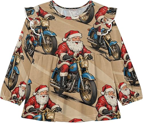 Girls Christmas Long Sleeve Shirts Casual Crew Neck Cute Santa Print Basic Tunic Tops Loose Soft T-Shirt