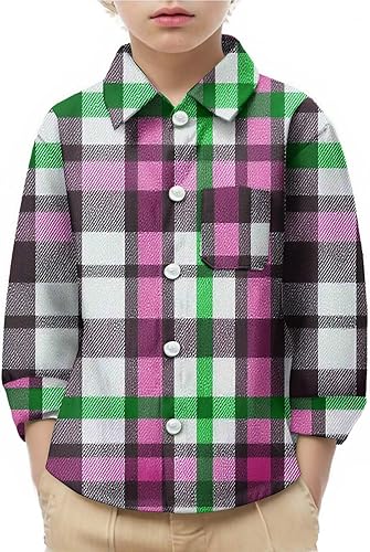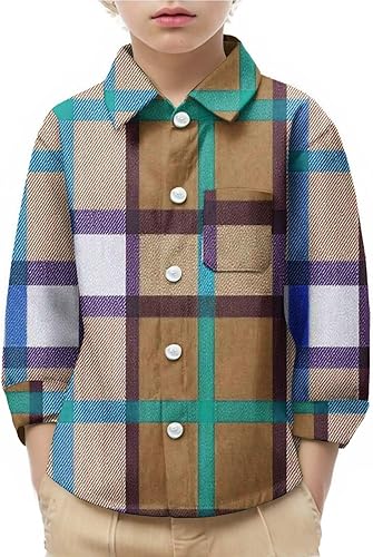 Toddler Boys Button Down Flannel Plaid Shirts Baby Girls Vintage Long Sleeve Kids Casual School Uniform Shirt for 0-8 Years