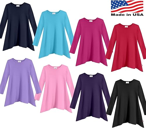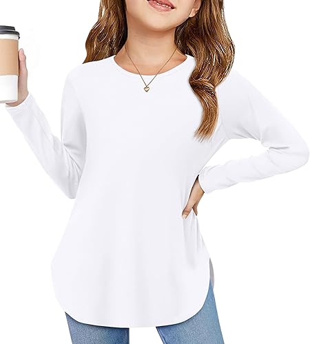 Arshiner Girls Long Sleeve T Shirts Round Neck Curve Hem Side Slit Basic Casual Loose Tunic Soft Tops