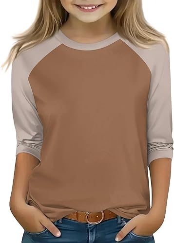 Girls Baseball Raglan T-Shirt 3/4 Sleeve Soft Tee Classic Casual Top