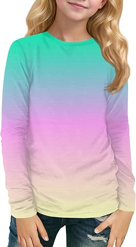 Girls Long Sleeve Shirts Fall Shirts Crewneck Tops Loose Gradient Color Blouses Fall Clothes 3-14 Years