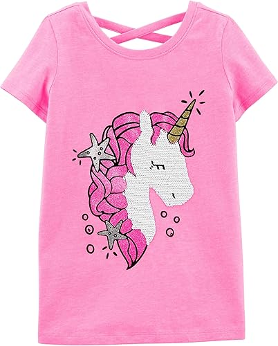 LittleSpring Girls Short Sleeve Tshirt Heart Shaped Flip Sequin Tees